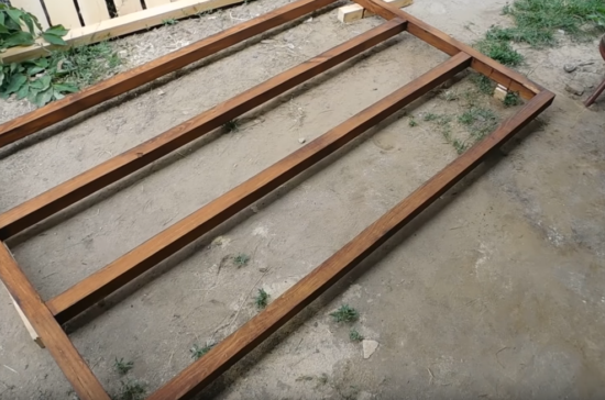 Покрываем каркас основания антисептиком для дерева, который защитит каркас от плесени, грибков и насекомых.